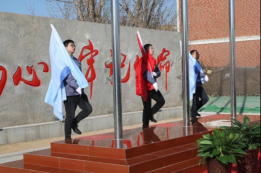 伴隨著嘹亮的《中華人民共和國國歌》奏響,三位升旗手將鮮艷的五星紅旗和天豐司旗一同冉冉升起,在矗立天豐廠區(qū)多年的太行山巨石前,五星紅旗獵獵飄揚,兩面湛藍的司旗在國旗的映襯下明艷招展。